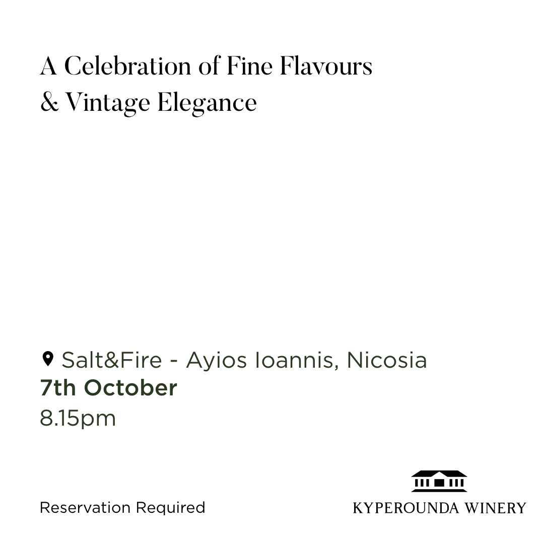 Throughout the event, participants will savor a specially curated menu designed to highlight the distinctive flavors of Kyperounda Winery’s wines. Each dish will be paired with vintage wines from the estate, offering a complete gastronomic journey that harmoniously combines taste and aroma.